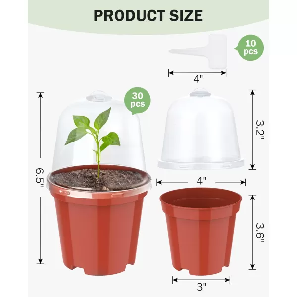homenote Clear Nursery Pots for Plants,4 Inch Seedling Pots with Drainage Holes Plant Pot for Planting Flower Indoor Seed Starter Pot Outdoor High Transparency with Bonus 20 Plant Labels (30 Pack)(Red-with Lid)