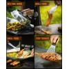 【Multifuntional Griddle Accessories Kit】131 pcs essential griddle accessories all in one set, include extra large burger spatula, oversized spatulas, melting dome, exclusive apron, grill tongs, grill fork, fish turner, chopper, scraper, squeeze bottles, spice shakers, silicone glove, meat injector, 100pcs bamboo skewers, cleaning brush, storage bag, 8 hooks.