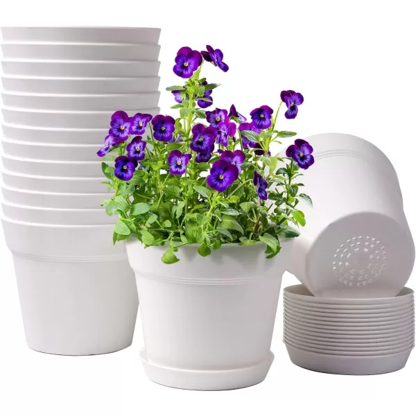 HOMENOTE Pots for Plants, 15 Pack 6 inch Plastic Planters with Multiple Drainage Holes and Trays – Plant Pots for All Home Garden Flowers Succulents (White)(Green-15pcs)